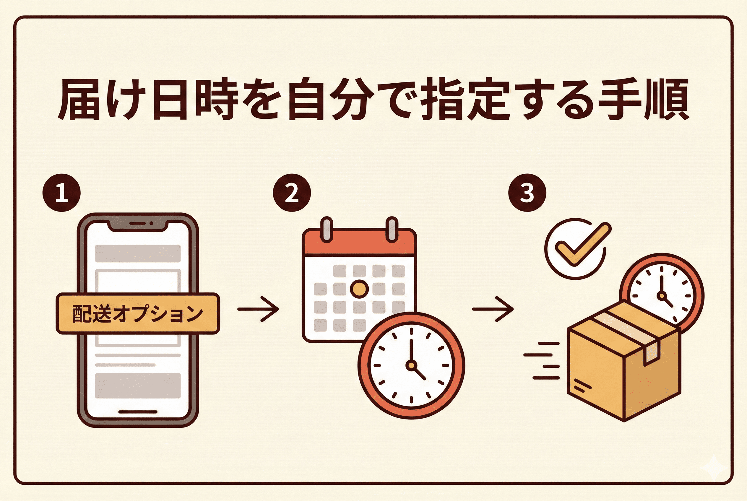 Amazonには「お届け日時指定便」というサービスがあり、届く日時をあらかじめ選ぶことができます。