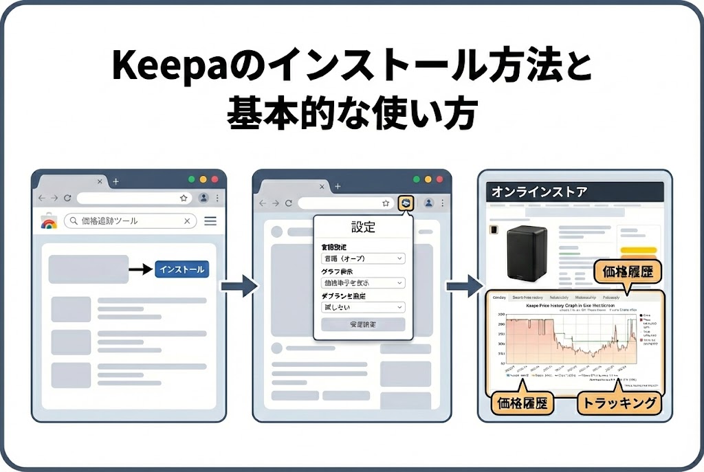 | Keepa | Chrome拡張、Firefox拡張、スマホアプリ、Webサイト | 基本無料(有料版あり) | 最も定番。詳細な価格推移グラフ、価格アラート機能 |