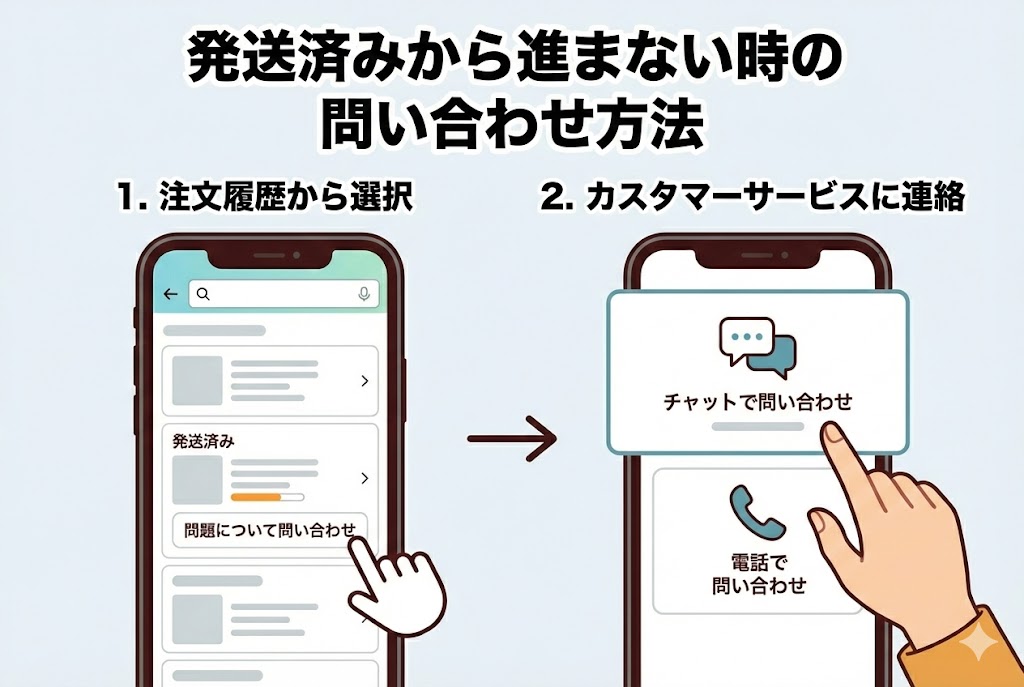Amazon発送の商品や、配送業者が「Amazon」と表示されている場合は、Amazonカスタマーサービスに問い合わせましょう。